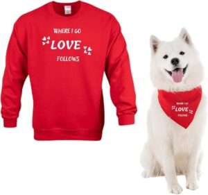This cozy dog sweater and bandana set makes a thoughtful Valentine’s gift that combines comfort and style.