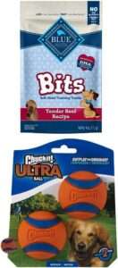 The BLUE Bits training treats are made with real beef as the first ingredient and come in tender, bite-sized pieces that are ideal for training and rewarding good behavior.
