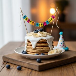 For special days, I make a “cake-style” pancake using banana, peanut butter, and oat flour.