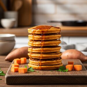 I mash cooked sweet potato into the batter for a soft, cake-like texture.