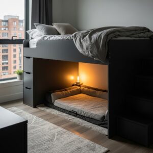 A bed with a dog bed underneath is more than a space-saving solution—it’s a thoughtful way to create comfort, routine, and closeness for both dogs and their owners.