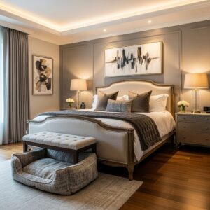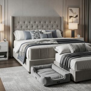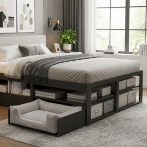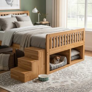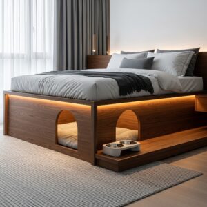 For a high-end look, luxury bed frames with thoughtfully designed dog spaces offer the best of both worlds.
