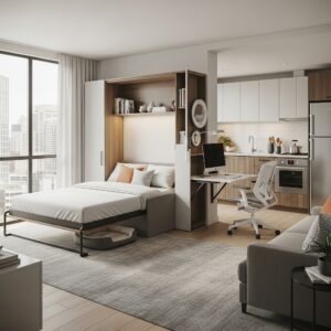 This setup is ideal for studio apartments, guest rooms, or multifunctional spaces where flexibility is key.