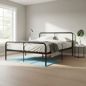 A metal bed frame offers a simple, open design that provides excellent airflow beneath the bed.