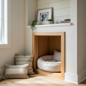 This idea works especially well in living rooms or bedrooms where you want your dog’s space to feel intentional rather than temporary.