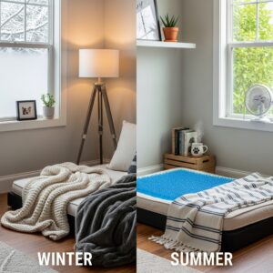Add cozy blankets in winter and cooling mats in summer.