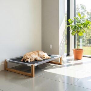 An elevated dog bed corner adds airflow and keeps your dog off cold floors.