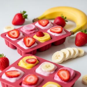 I blend strawberries, banana, and plain yogurt, then freeze them into fun shapes.