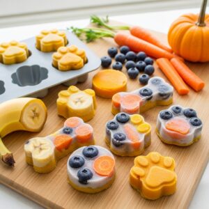 Think banana, blueberry, carrot, and pumpkin—all in one. Freezing them into small molds creates a nutritious, well-balanced treat.