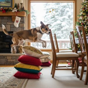 My dog loves jumping over cushions, crawling under chairs, and weaving around objects.