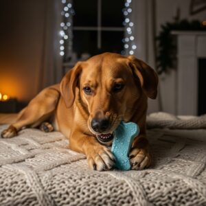 I use dog-safe options like frozen peanut butter treats or dental chews.