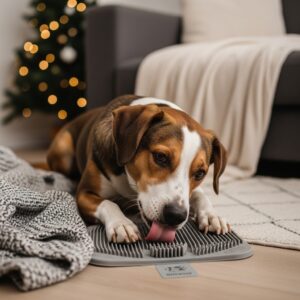 I spread dog-safe yogurt or peanut butter on the mat and let my dog lick away.