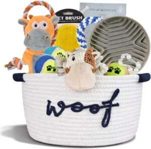 Versatile and practical, the handwoven premium basket (14 x 7 x 7 in) can be used for storage, while the toys and accessories provide endless fun and utility, making it the perfect gift for any dog lover.