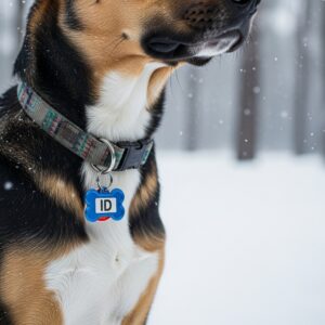 Snowstorms can make dogs panic and run off. I make sure my dog always wears: