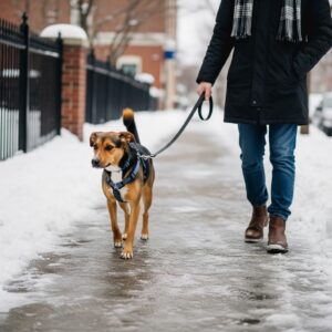I’m extra careful around icy sidewalks, stairs, and frozen puddles. Dogs can slip just like we do.